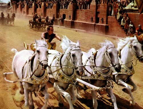 ユダヤ貴族のジュダ・ベン・ハーが、ローマ軍の司令官で旧友のメッサラの協力を断った為、奴隷に陥れられ一家は離散させられたが、奴隷船でマケドニアと交戦中に総司令官アリウスを助けたことにより自由の身となる。 メッサラへの復讐に燃えていたベン・ハー…